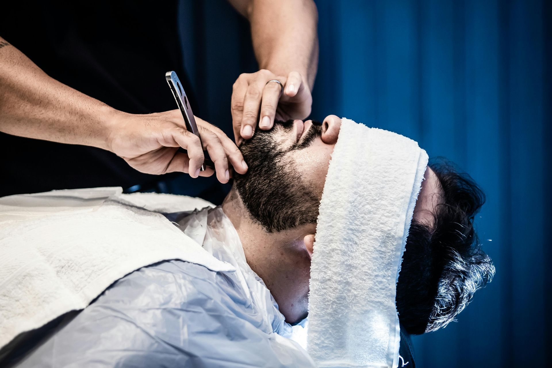 Your barber begins by assessing your skin and asking if you have sensitive areas or spots prone to irritation. The hot towel treatment lasts several minutes and is reapplied between passes to keep your hair soft and your skin relaxed. The straight razor is stropped before use and held at a precise angle to shave without scraping, and the barber wipes the blade clean after every few strokes to prevent buildup.
